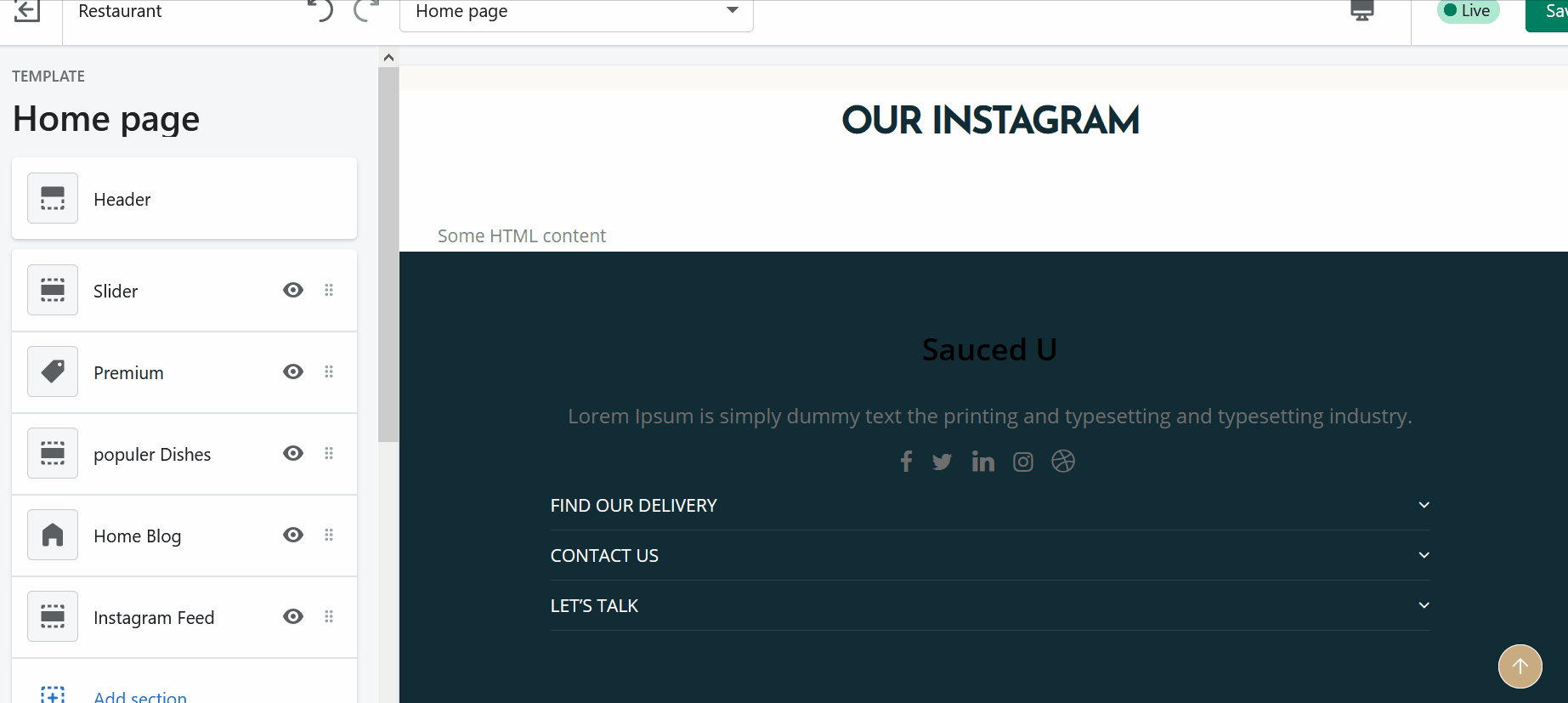 .eapps-instagram-feed-posts-grid-load-more{ display: none !important; } - Navigate to your admin for your store, and add a new section and paste the following code over the code in your new section.
